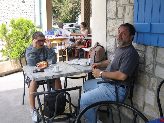 Below: Relaxing after our walk at the Bar Les terrasses. It was from here I took the previous photo.